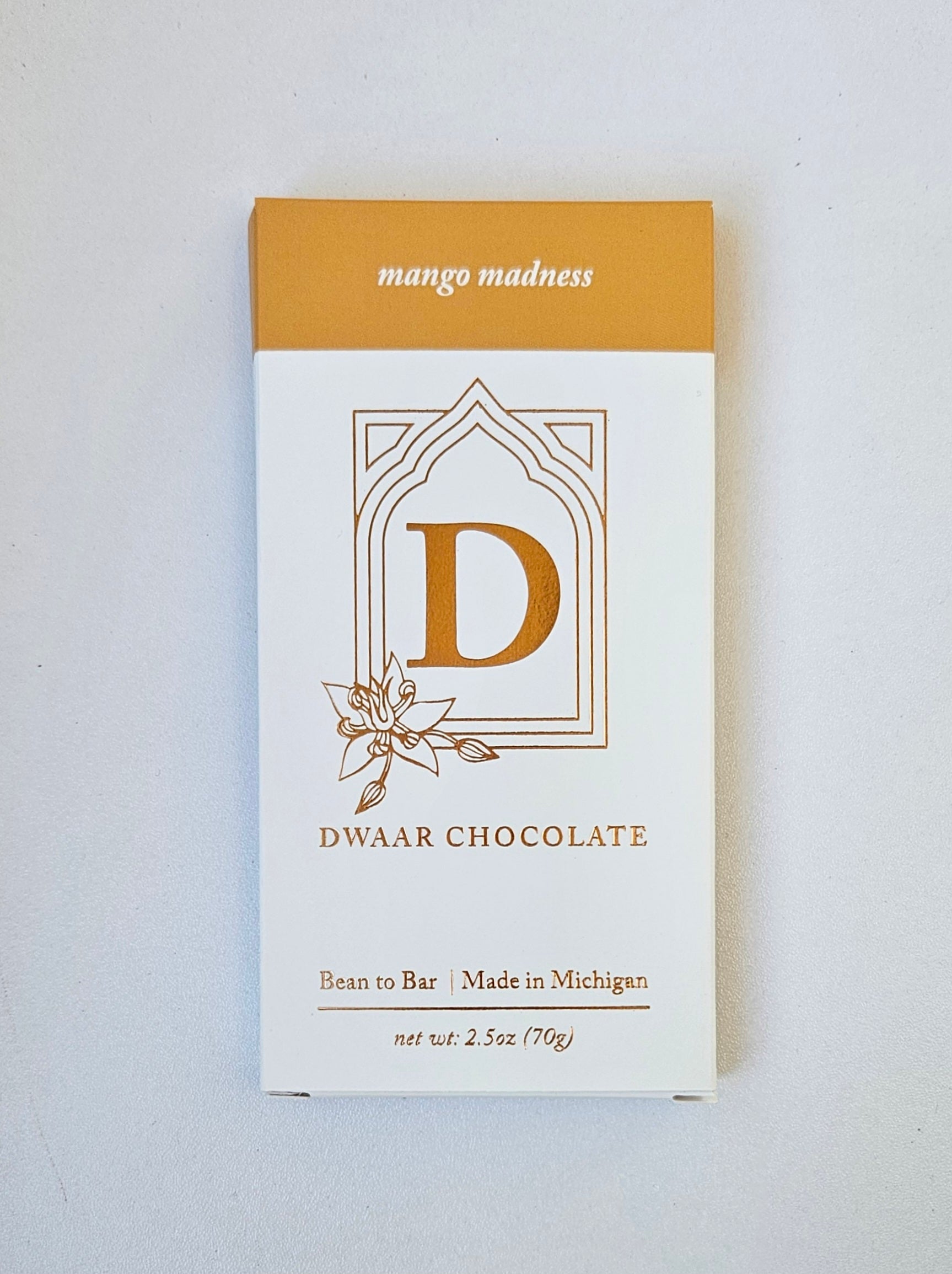 Cocoa butter, sugar, mango, lime, Spanish paprika, chili flakes